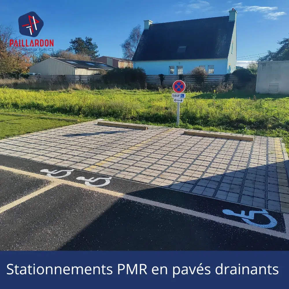 > Mis en place de pavés drainants pour les stationnements réservés aux personnes handicapées